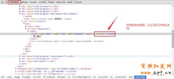 三、來(lái)到頁(yè)面屬性,側(cè)邊詳情頁(yè)是強(qiáng)制開(kāi)啟的,要怎樣做才能隱藏它呢?右擊選擇圓點(diǎn)處,將會(huì)看見(jiàn)“審查元素”,按Crtl+F查找“checked=checked”,然后把這段代碼刪除保存即可,接著按照950px布局設(shè)計(jì)店鋪裝修就行了。