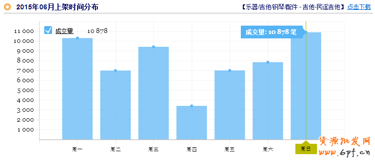 從搜索指數可以看到,吉他在5月底的時候開始上升,暑假這段時間是一個高峰期,在現階段是比較適合推廣的寶貝,所以選擇吉他為重點寶貝。