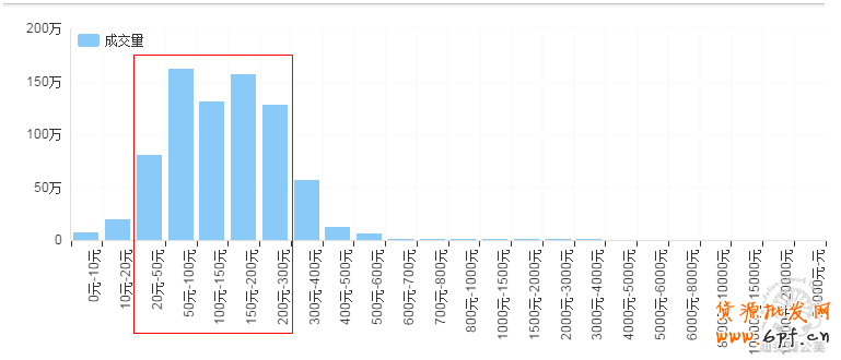 從行業的客單價分布上看,20元到300元這個價格區間的及成交量是最大的,而其中50-100個的成交最高。而在淘寶搜索中分析,接近一半的搜索人群對92元到265元價位的價格消費是熱度是最高的。