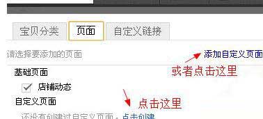四、然后在“頁面”窗口單擊“添加自定義頁面”或者“點擊創建”
