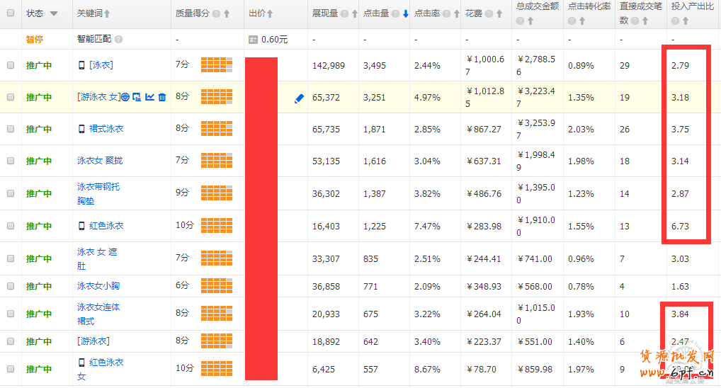 到了8月末,整個泳衣類目出現下滑后,需要穩定整個直通車的流量和轉化的穩定性。