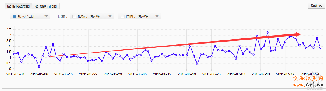 從直通車的總體數據上看,直通車所引入的流量是有比較大幅度的上升,而流量的提升,并不會帶來成本的提高,整個賬戶的ppc是出現大幅度的下滑。而整個直通車的成交金額是出現高速的提升,而roi也跟隨著幅度提升,從原本的1左右逐步提升到了2左右。