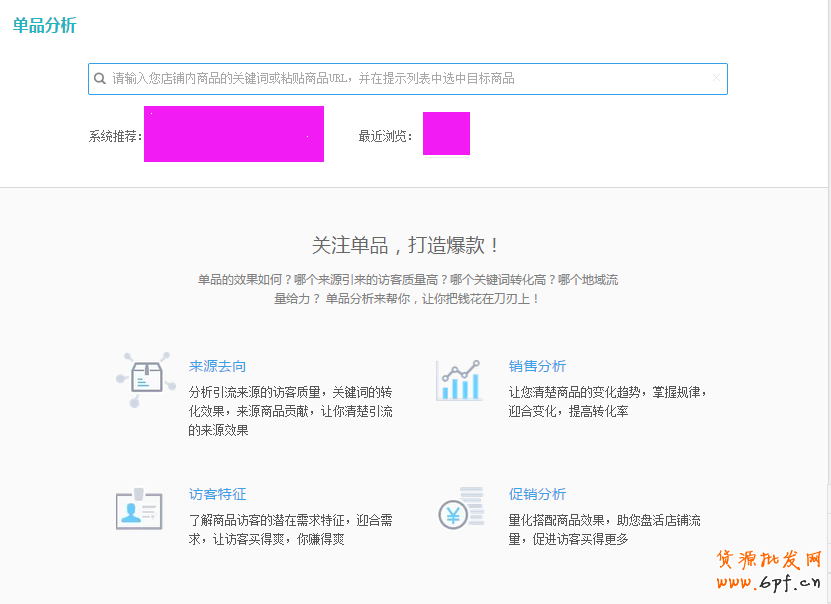 從單品分析上,我們可以通過對店鋪的寶貝進行查看數(shù)據(jù),在準備上車測款的寶貝或者是查看店鋪寶貝及直通車寶貝的數(shù)據(jù)時,咱們可以通過單品寶貝,查找出自己想要分析的寶貝,從而進一步的得到更多的數(shù)據(jù)。包括流量來源的去向、寶貝的銷售趨勢、訪客的特征、關于促銷的分析。