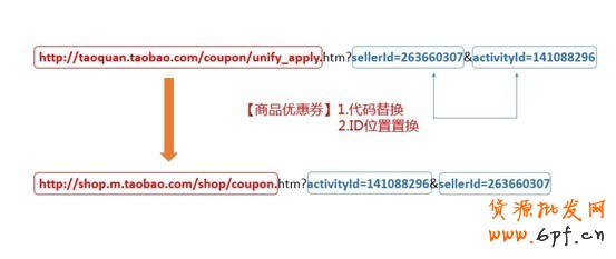 ·設置商品優惠券時,首先把鏈接的頭部置換,然后把seller ID和activity ID順序置換,復制該鏈接即可