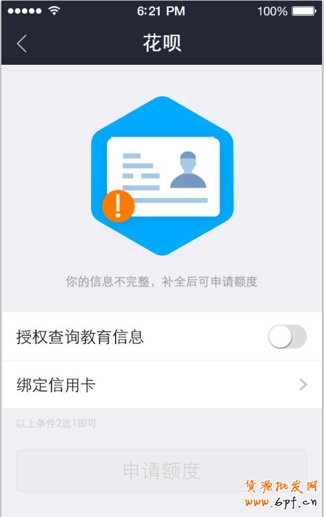 2、 可申請用戶,提示綁定信用卡或查詢教育程度(客戶可二選一)。