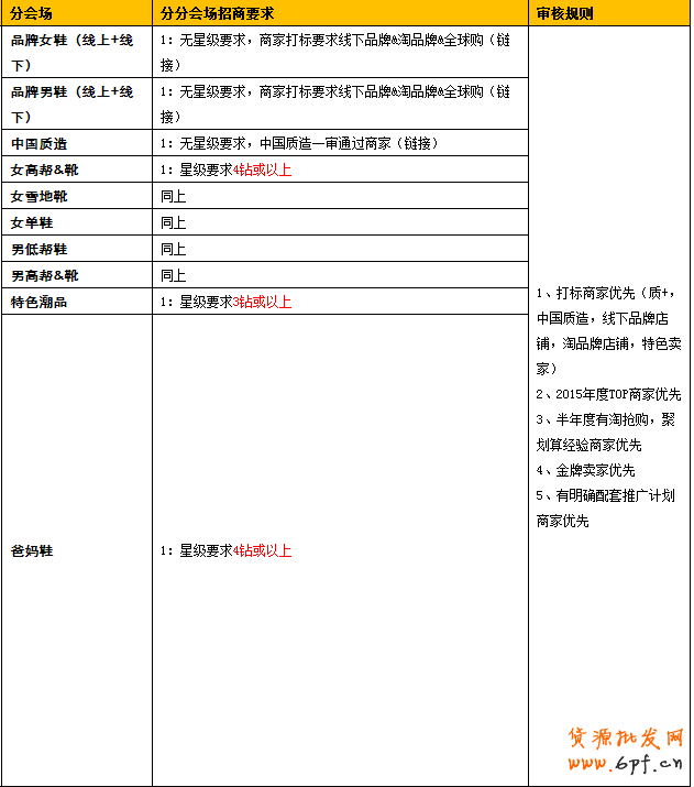 1.一級或二級主營類目為男女鞋,店鋪星級要求見分分會場;
