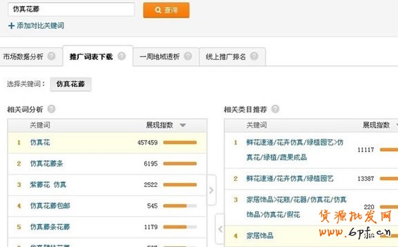 選詞價(jià)值:這里主要是反映的淘寶網(wǎng)現(xiàn)在要主推的類目和關(guān)鍵詞,對(duì)于大賣家把握市場風(fēng)向標(biāo)是很重要的。我們仿真花屬于小類目,在這方面的參考價(jià)值不大。