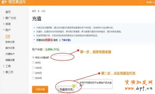 1)通過淘寶/天貓直通車或者鉆石展位充值頁面通過點擊“充值寶代充“進入營銷充值寶服務(wù)頁面申請;