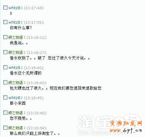 本人寧可錄制視頻倒掉10瓶香水進廁所,也絕對不會給你這種人來敲詐,人活著為的就是一口氣,我不服輸,所以我創業,我沒資金,所以我開網店起步,和你這種買家絕對不妥協。望淘寶還1個公道!