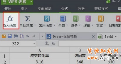 以上準(zhǔn)備工作做好了以后,接下來就可以選中工作表中的任意空白單元作為存儲運(yùn)算結(jié)果的位置。點(diǎn)擊Excel的“播入函數(shù)”