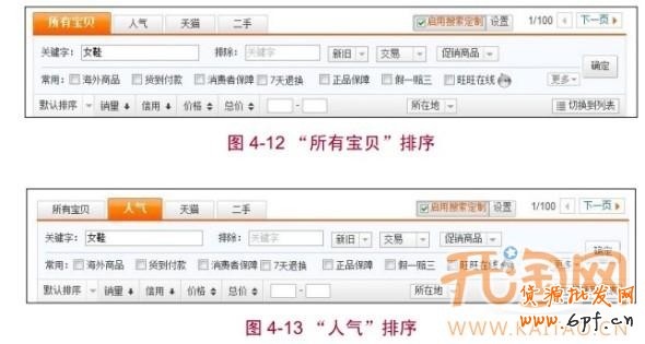 2012年7月26日,淘寶搜索“人氣排序”位置進行了以下調整,如圖4-14、圖4-15所示。