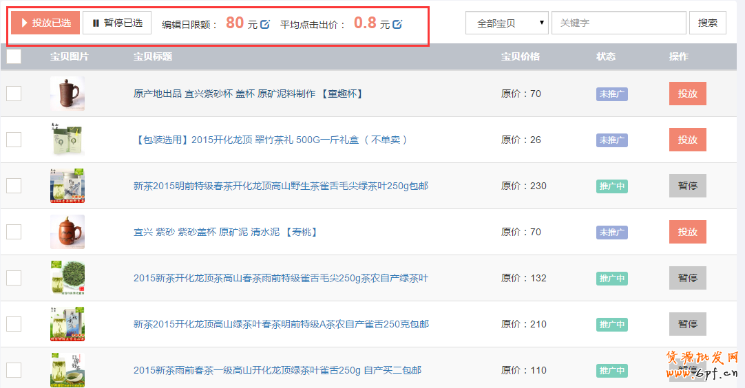 因為站外資源更多元化、豐富化,所以投放價格比直通車低很多,我嘗試的用了用,每個CPC點擊不到6毛錢,每天幾十塊,預算控制的很好。查看了后臺的訪問來源中購物網站居多,掐指一算很劃得來。如果我們想推廣某一款或者某幾款寶貝,只要在軟件里投放,系統自動就匹配人群進行投放了。大家可以看下我的推廣方案,平均點擊出價我自定義到了8毛,提高流量的質量。現在可以免費試用,點這里