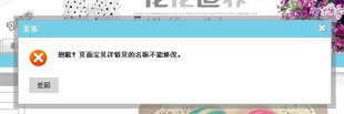 裝修了店鋪首頁后,點擊發(fā)布,出現(xiàn)“抱歉!頁面寶貝詳情頁的名稱不能修改” 給淘寶客服留言N次,問題沒有得到解決。給客服打了兩次電話,一樣無法解決。已經(jīng)過去一個月了,真的是急死人了。誰能告訴我怎么辦啊!