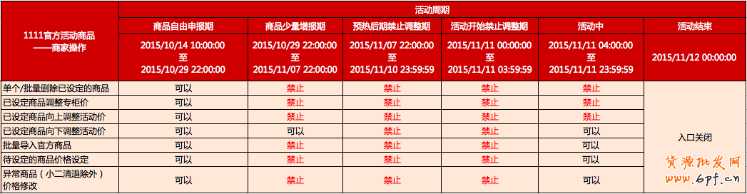 一、11月1日至11月11日雙十一活動商品,有關申報商品修改價格、庫存、上下架的時間。