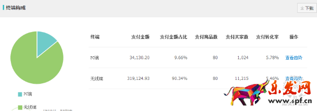 目前淘寶的趨勢是無線端占據大比例,無線端越來越成為人們淘寶的重心,店鋪無線端的數據也是較好的,遠高于pc端,這點也較符合目前淘寶的趨勢,寶貝手機端也可以設置一些手機專享價,或者是完善手機端投放,從而提升流量以及權重,有利于寶貝更長遠的發展。