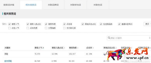 這里重要的數據是搜索點擊人數,從這里可以看到搜索點擊,也是可以在右上角搜索框查詢自己的品牌,這些數據都是按統計維度去重的,是非常準確的。