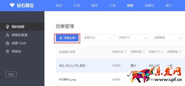 制作你所選擇的資源位相應尺寸的創意圖片,并先在創意管理中上傳,等待審核。