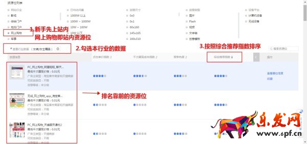 操作方法:勾選網上購物——勾選本行業——按照綜合推薦指數排序——選擇排名靠前的資源位