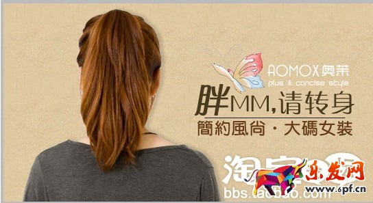 AOMOX:例如這圖便是投放在女裝頻道首頁和淘金幣的,投放女裝頻道的點擊率在9-11%,淘金幣點擊率在15-22%。我們店一向不主張圖片上打促銷文案,除了與其他家的素材(打折扣包郵之類)有反差外,主要強調的是品牌思想。我們在投放時,做了店鋪定向,都是圍繞大碼女裝行業去展開的。這圖有幾個思想,一是胖MM請轉身,做個自信的女人,不要怕面對別人,即便胖也可以樂觀的生活;二是,給大家一個懸念,讓人好奇,這個胖MM到底是長什么樣子的。由于定向的人群都是肥胖人群,所以圖片會引起共鳴,點擊率和轉化率都相對較高。