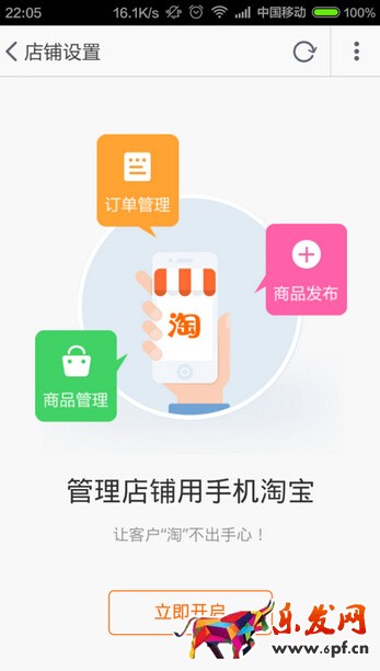 當(dāng)把上述操作做完,我們就能看到“立即開啟”的按鈕。這樣,手機(jī)淘寶店鋪就開起來了。