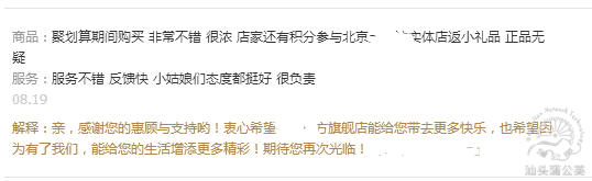 二不要:有些賣家很清楚對于買家的評論需要及時回復,但是卻弄巧成拙,每條買家的評論沒有看內容就統一回復,其實這樣反而容易給買家造成反感的心理。