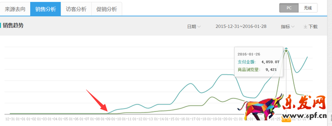 這是大神最近測試的2016年淘寶爆款的玩法,這個方法還是很有效果的,所以才推薦給大家,總共挑選4款商品上架,經過測試,最終決定打造的兩款都已經打造成功,銷售單日過萬元,UV過萬。我們先來看看數據: