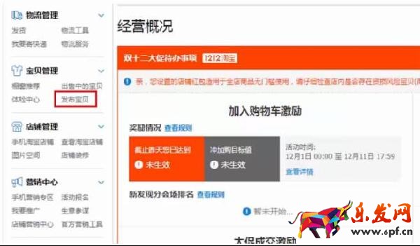 進(jìn)入后臺(tái)管理頁(yè)面,我們會(huì)看到左側(cè)有一個(gè)菜單欄,我們找到寶貝管理,點(diǎn)擊發(fā)布寶貝
