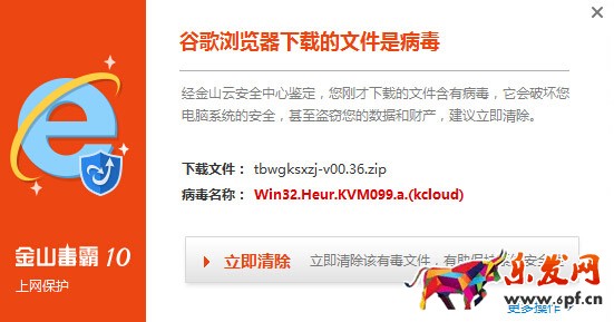 用百度搜索關鍵詞“淘寶違規考試軟件”,下載了幾個,打開下載的鏈接的瞬間,就被瀏覽器警告網站不安全,冒險選了一個信任下載了一個,之后,被殺毒軟件報毒。