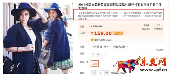 但是,在這里這些我們都不考慮,我們只考慮頁面停留時間的影響。四張圖片,實際上給我們的感覺是不一樣的:第一張圖片,寫的一堆東西,我相信大多數(shù)人可能會有一樣的感覺,不想看,這樣就是浪費了時間,沒有任何效果;第二張圖片,也寫了一堆東西,但是我們注意到了三個關(guān)鍵詞,所以停留的時間長了一些。“新品熱賣”、“女神冬季必備”、“現(xiàn)在拍下申通包郵”,因為這三個用了一個特殊的符號標注了一下;第三張圖,我相信就會有一部分人讀完了,尤其是小女生們,因為是很口語化的語言,跟你“面對面”去介紹這款衣服,頁面的停留時間會更進一步的延長;第四張圖片呢?效果是不是更好?