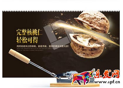 這里說的時事,可結合當下流行的事物,如下圖,就結合了水果忍者游戲的特點,將開核桃器的功能賣點相結合,頁面設計上具有趣味性讓人印象深刻。
