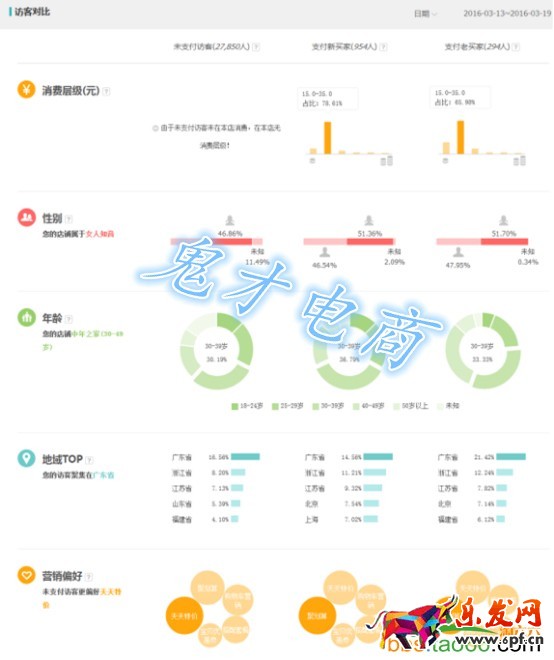 比如主要經營調味料的食品類目商家,人群以30-39歲的中年女性居多,在大部分流失未支付買家中營銷更偏好天天特價,這類人群一般都是居家主婦,比較過日子,所以更多店鋪優惠營銷活動會對顧客有很大吸引力,讓顧客占到便宜促使下單。在了解了人群之后,在直通車推廣中也能更好的利用人群定位圈定更多精準流量。