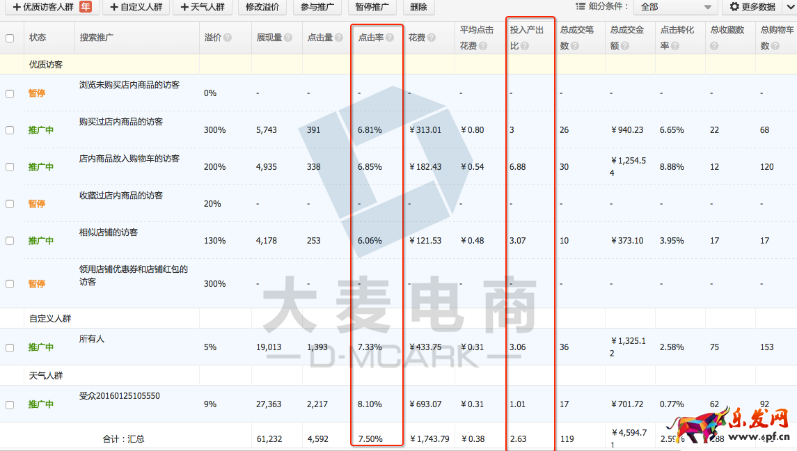 (1)搜索人群步入后期優化方向:多維度自定義人群開啟,根據流量和轉化效果調整溢價。