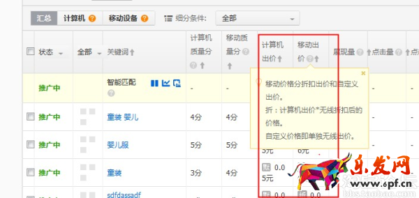 移動折扣價格來計算;如您對該關鍵詞單獨改了移動的出價,則移動設備上的點擊會根據您設置的移動出價來進行扣費