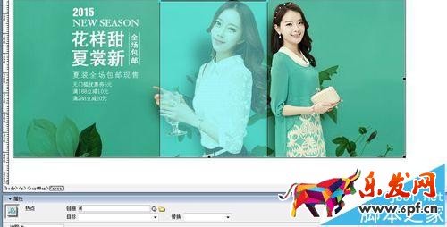8、單擊設計區域的圖片,在下面的屬性欄中會有矩形熱點工具、橢圓形熱點工具、多邊形熱點工具可供選擇