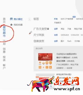 之后就可以看到一個叫做展位超市的欄目,在這里有標簽、廣告主類型、尺寸列表、創(chuàng)意類型。在這里也有鉆展的教程,大家也可以學習一下。