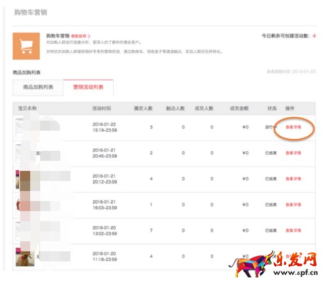 創(chuàng)建完活動(dòng)后,可以在活動(dòng)列表中查看活動(dòng)的基本數(shù)據(jù)及運(yùn)行狀態(tài)。可以通過查看詳情,獲得本寶貝的活動(dòng)具體詳情好更詳細(xì)數(shù)據(jù)。