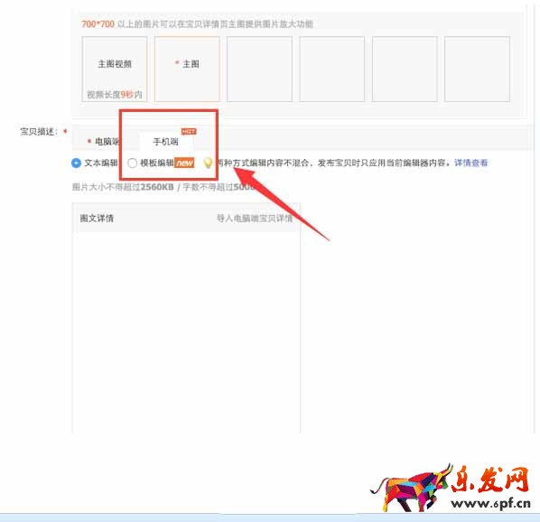 步驟一:新發或編輯寶貝時,在編輯電腦端的寶貝描述后,選擇“手機端標簽頁”,編輯手機端的寶貝描述。