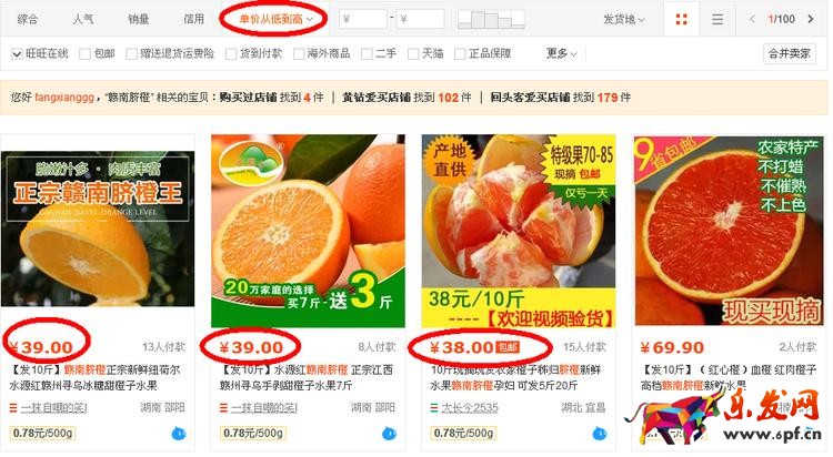 在尋找同定位競爭對手的時候,商家需要明確的“同定位”的競爭對手是什么樣的,從各個維度去搜索,能夠得出更加準確全面的結果。比如:發貨地點。贛南臍橙的發貨地點是江西,把發貨地點同樣都是江西的勾選出來,再排查一遍,可以得到以下數據: