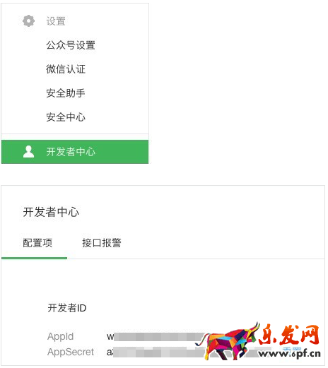 3. 點擊左側菜單最后一項,進入 [ 開發者中心 ],并獲取對應的AppID以及AppSecret