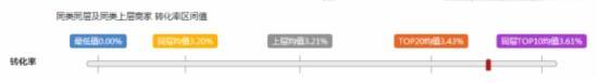 因?yàn)樵谀壳肮俜降牡赇伜笈_數(shù)據(jù)指標(biāo)中,無法直接查看靜默轉(zhuǎn)化率的行業(yè)數(shù)據(jù),所以我們可以通過店鋪的轉(zhuǎn)化率行業(yè)均值,結(jié)合自己店鋪其它相關(guān)數(shù)據(jù)指標(biāo)所處的級別,估算自己店鋪的目前所處行業(yè)水平。
