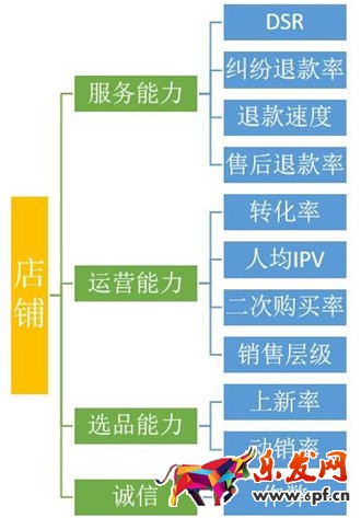 店鋪權重分為服務能力、運營能力、選貨能力和誠信。