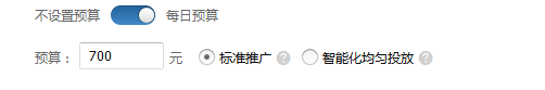 日限額的設置分為兩種,標準投放和智能化均勻投放,一般選擇標準投放,新手日限額不宜太多,后期根據效果往上加錢。