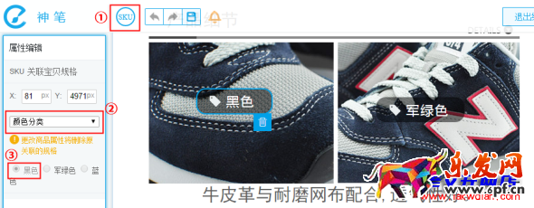 如下圖,選擇添加SKU,把標簽放在相應的圖片上,選擇具體的顏色或者尺碼等信息。