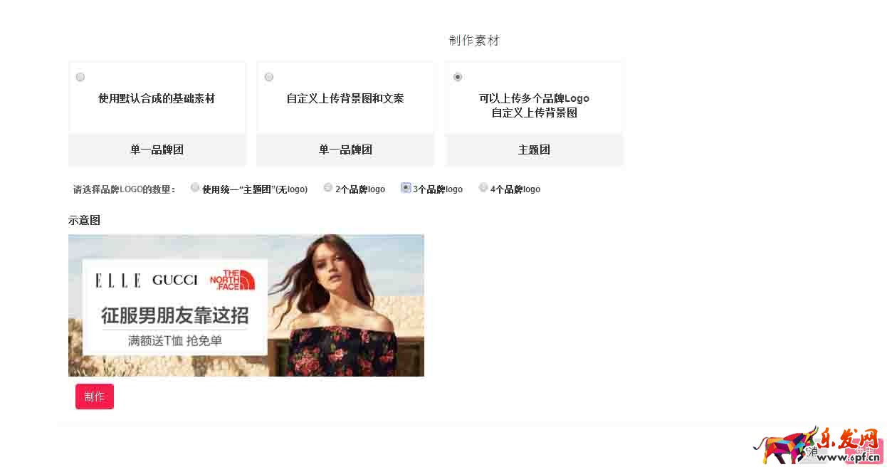 1、基礎素材:填寫品牌logo、品牌logan、利益點、商品圖,自動合成多個入口圖(主題團多logo入口圖樣式不在本步驟填寫,在品牌團頻道素材中選擇設置);