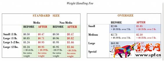 據(jù)了解,亞馬遜10月的倉儲費降低,但11月和12月費用將提高,為了抵消一部分影響,11-12月稱重處理費將降低。下圖為倉儲費變化: