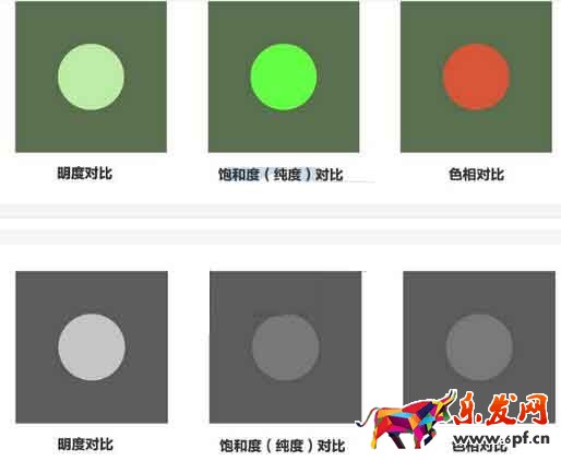 這樣看,哪個對比效果好些?是不是一目了然了?不過還是要說明一點,明度飽和度里任何一項要素發生改變,其他要素也是跟著改變的,比如說你增加了一個顏色的明度,代表你在這個顏色里增加了白色,那么相對應的這個顏色的純度飽和度肯定也就下降了,不知道我說這些你們明白了沒有?(默默點根煙~惆悵臉~)