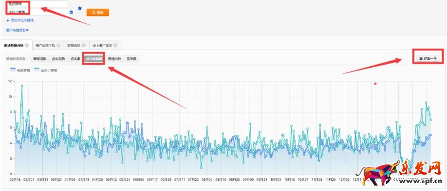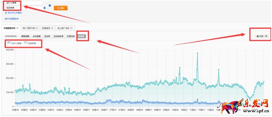 打開(kāi)直通車(chē)流量解析輸入“電腦音箱”拉取一年的數(shù)據(jù)得到如下圖顯示: