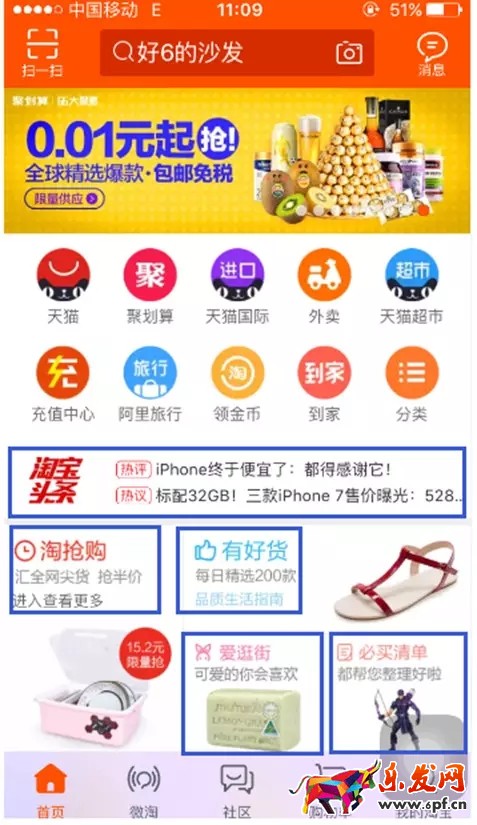 看到了沒:淘寶頭條、淘搶購、有好貨、愛逛街、必買清單、超實惠、特色好貨、熱門市場、淘寶直播、每日好店等等等等。