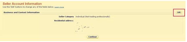進(jìn)入后就是Seller Account Information頁(yè)面,我們可以看到此時(shí)的Seller Category仍舊是Individual,右側(cè)有一個(gè)可點(diǎn)擊的edit按鈕,如圖: