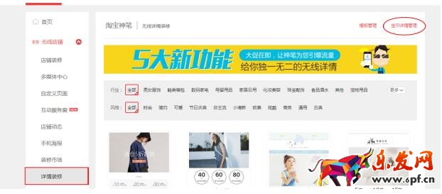 來到我們裝修無線端詳情的頁面(wuxian.taobao.com),在無線運營中心里面找到詳情裝修,點擊詳情裝修后,在右邊找到寶貝詳情管理。